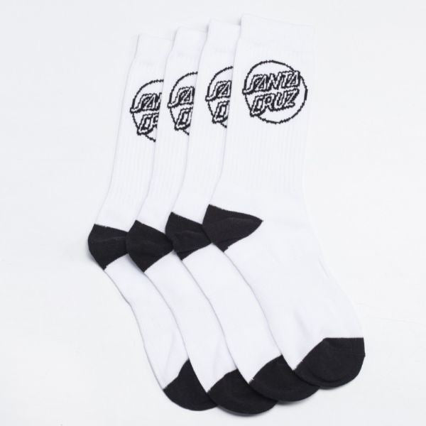 Santa Cruz Socks 4 Pack Mono White Crew Size 7-11 New Mens Skateboard Sox
